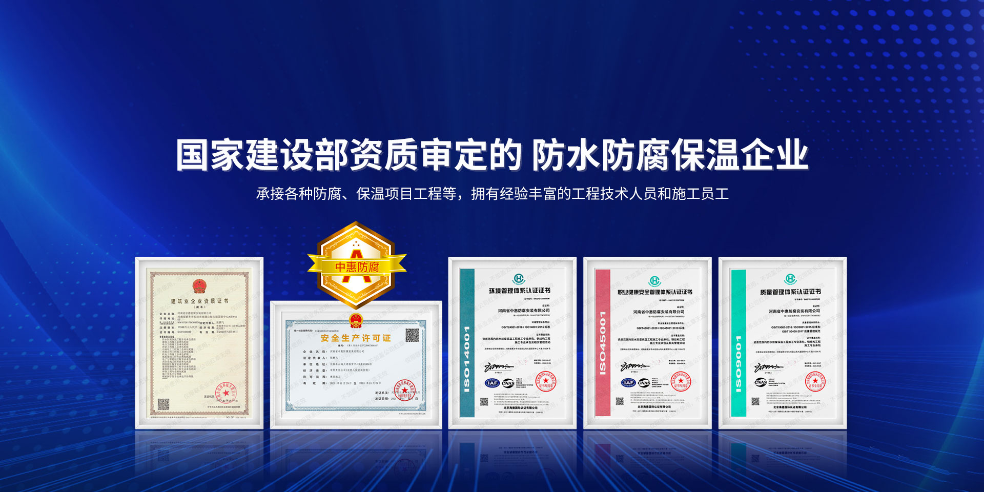 公司經營范圍:防水防腐保溫工程;消防設施工程;建筑裝修裝飾工程;建筑機電安裝工程;電力工程;建筑工程;石油化工工程;工業清洗工程;油罐清洗工程;鋼結構工程;環保工程;模板腳手架工程;電纜防火封堵、防污閃噴涂、外墻外保溫工程;各類施工勞務作業;設備維修、船舶鉚焊、涂裝;電力工程材料、建材、防水材料、防火材料、防腐保溫材料銷售,并相繼通過了GB/T19001-2008idtISO9001:2008GB/T50430-2007質量管理體系認證證書。GB/T24001-2004idtISO14001:2004環境管理體系認證證書。GB/T28001-2011idtOHSAS18001:2007職業健康安全管理體系認證證書。公司是中國防腐蝕于防護協會、中國施工企業管理協會、電力協會和中國鋼結構防水協會會員單位。 公司的經營業務涵蓋了石油、化工、電力、冶金、煤炭、船舶、國防、燃氣、水利、環保、交通運輸、航空及國防軍工和輕紡市政等行業的防腐保溫絕熱設備。鋼結構安裝、防火、防水、金屬噴鍍、聚脲噴繪、陰極保護、防滲透堵漏、玻璃鋼及各種磚版材料襯里、橡膠襯里、煙氣硫和耐酸溶劑腐蝕等工程施工。公司連續十年榮獲“省市先進施工企業”“安全生產先進單位”“重合同,守信用企業”和“AA***資質企業”的稱號。2000年被命名為市級文明單位,2002年被國家工商行政管理局命名為“重合同,守信用的企業”、被中國工業防腐蝕技術協會命名為“防腐蝕企業,能源節約及環境保護領域有豐富的經驗和***的業績。工程一次交驗合格率100%。其中攀枝花鋼鐵公司煉鐵廠四號高爐及熱風爐防腐工程、上海寶鋼公司煤氣柜防腐工程、撫順石油一廠裝置防腐項目、齊魯石化公司稀烴廠高塔防腐工程、吉林化學工業公司煉油廠油罐防腐工程、天津石化熱電廠六號爐頂棚聯絡管保溫工程、大慶油田(太倉)力神泵業工程、中國化學工程第十一建設工程、中原油田勘探局工程、中國石化銷售有限公司華北分部、魯皖輸油管道工程、貴州開磷息烽合成氨工程、陜西黃陵煤化工程、中國石油天然氣西部管道塔里木輸油工程、邯鋼集團邯寶鋼鐵公司煉鐵工程、德州供電工程、吉寶(南通)船廠工程,偃師華潤熱力工程、鄭州熱力總公司。 河南省中惠防腐安裝有限公司愿以豐富的施工經驗,***的技術,***的設備,***的管理,***的服務,竭誠為國內外廣大的用戶提供***滿意、******的工程作品。 我公司愿與國內外同仁一道,團結協作,共同推進防腐蝕行業發展! 公司地址:河南省長垣縣建設路北段360號 固定電話:0373-8866488 郵編:453400 網址:http://www_zhff_com_cn.shishanren.com